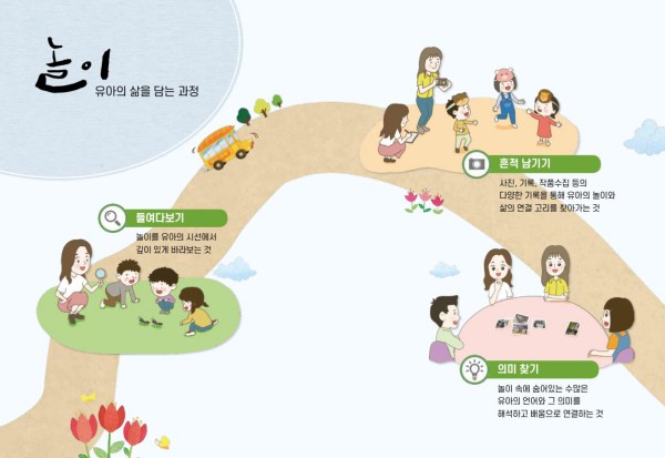 유아교육의 방향은 더 이상 지식 위주의 수직적 전달이 아니라,